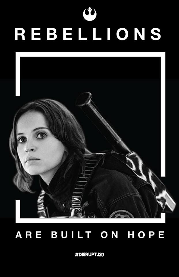 first image is art from the #DisruptJ20 mobilization by Dylan Petrohilos